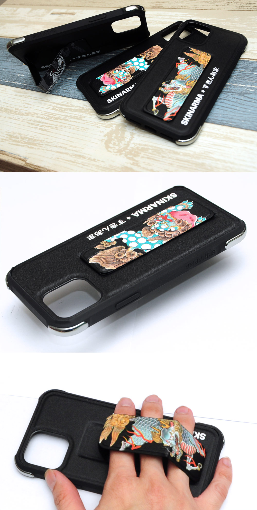 Skinarma Shinwa Sutando Series Drop Protection Case with Strap and Standable Vertical and Horizontal Portrait and Landscape Viewing Angle Standable Hand Grip Case for iPhone 12 iPhone 12 Pro 6.1 (Pixiu)