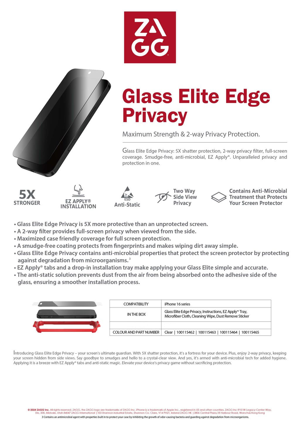 Zagg Glass Elite Edge 2 Way Privacy Tempered Glass Screen Protector with Easy Installation Tray for iPhone 16 6.1 (Privacy)